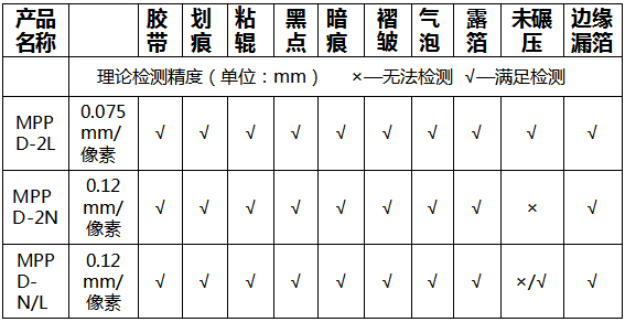 極片項目檢測:極片邊緣缺損面積檢測、極片折皺不良、接帶檢測、極片漏金屬檢測、貼膠露頭長度、貼膠垂直度檢測、膠紙是否蓋住極片、對位貼膠紙錯位檢測、有無保護膠紙檢測