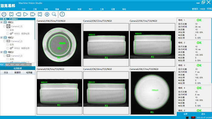 瓶蓋頂部、底部、側面軟件檢測界面