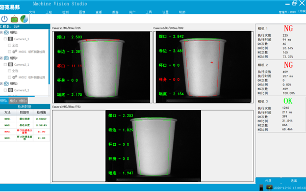 2.主要功能:紙杯外側壁缺陷檢測、污漬檢測,檢測結果IO信號輸出。 |